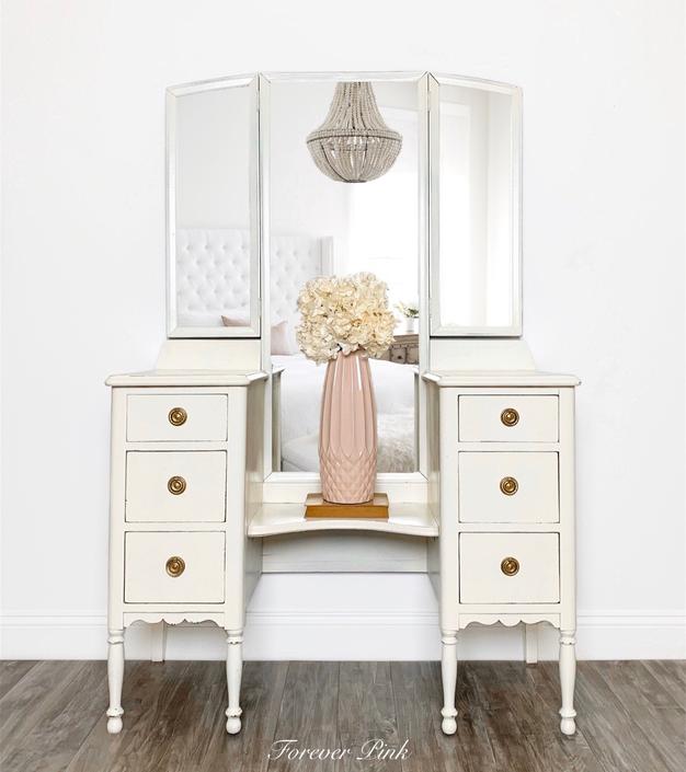 Vintage Vanity History: How It Became The Modern Makeup Table from flourishmentary.com 3 drawer vanity table set dressing table with cushioned stool makeup table white. Farmhouse vanity vintage vanity decorating blogs home decor vanity table home decor. This vanity set contains a table with a lighted mirror, a stool, a cabinet with 3 drawers. September 13, 2017 by shara, woodshop diaries. Shop for vanity tables in bedroom vanities. Made to order farmhouse wooden vanity with 2 shelves for baskets (sink and baskets not included). Narrow farmhouse table computer desk. Farmhouse vanity table set writing desk jewelry station folding mirror.